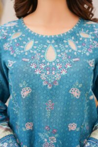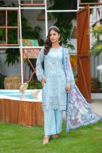 Add a touch of elegance to your wardrobe with Blossom- crafted from 100%cotton. This set comes with a matching pair of pants and a beautiful lawn chunri print dupatta combining style and comfort in one outfit.