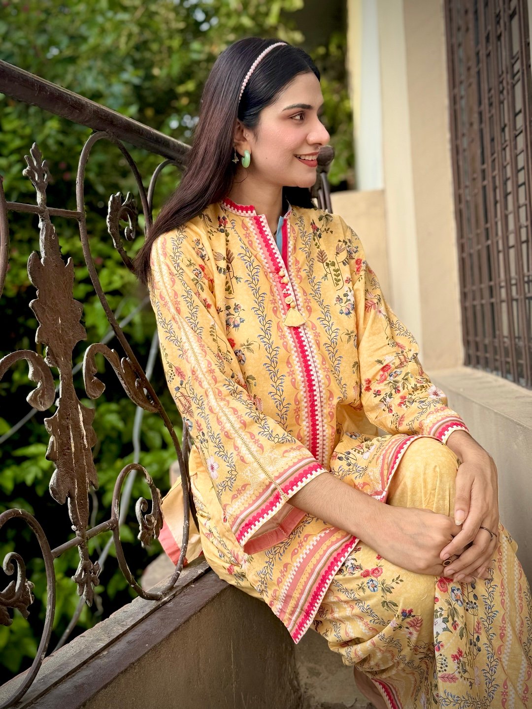 The Printed Lawn Cod 2-Piece Set offers a stylish and comfortable option for those looking to elevate their casual or semi-formal wardrobe. Crafted from soft, breathable lawn fabric, this set is perfect for warm weather, ensuring both comfort and elegance. The set features a beautifully designed printed pattern, adding a vibrant touch to your look. The two pieces typically include a top and matching bottom, making it a versatile addition to your closet for various occasions. Whether you’re heading to a casual gathering or enjoying a day out, the Printed Lawn Coad 2-Piece Set combines modern design with traditional comfort, making it a must-have for anyone who appreciates chic, easy-to-wear fashion.