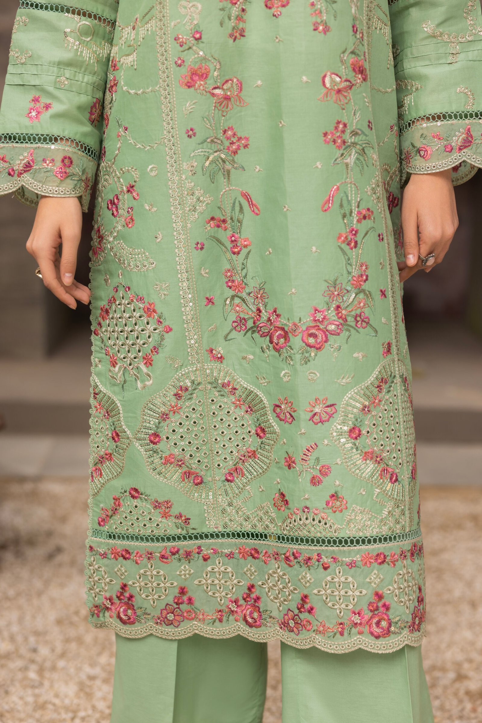 This EMBROIDED LAWN 3PC Stitched Suit offers a seamless combination of modern design and traditional charm. Made from premium lawn fabric, it ensures a comfortable fit for all-day comfort, perfect for the summer season. The suit includes a beautifully tailored shirt, stylish trousers, and an elegantly designed dupatta, all crafted with precision and attention to detail. Whether you’re attending a family gathering, casual outing, or festive celebration, this suit offers versatility and sophistication. The rich patterns and colors effortlessly elevate your look, making this 3PC Stitched Suit a chic and essential choice for any wardrobe.