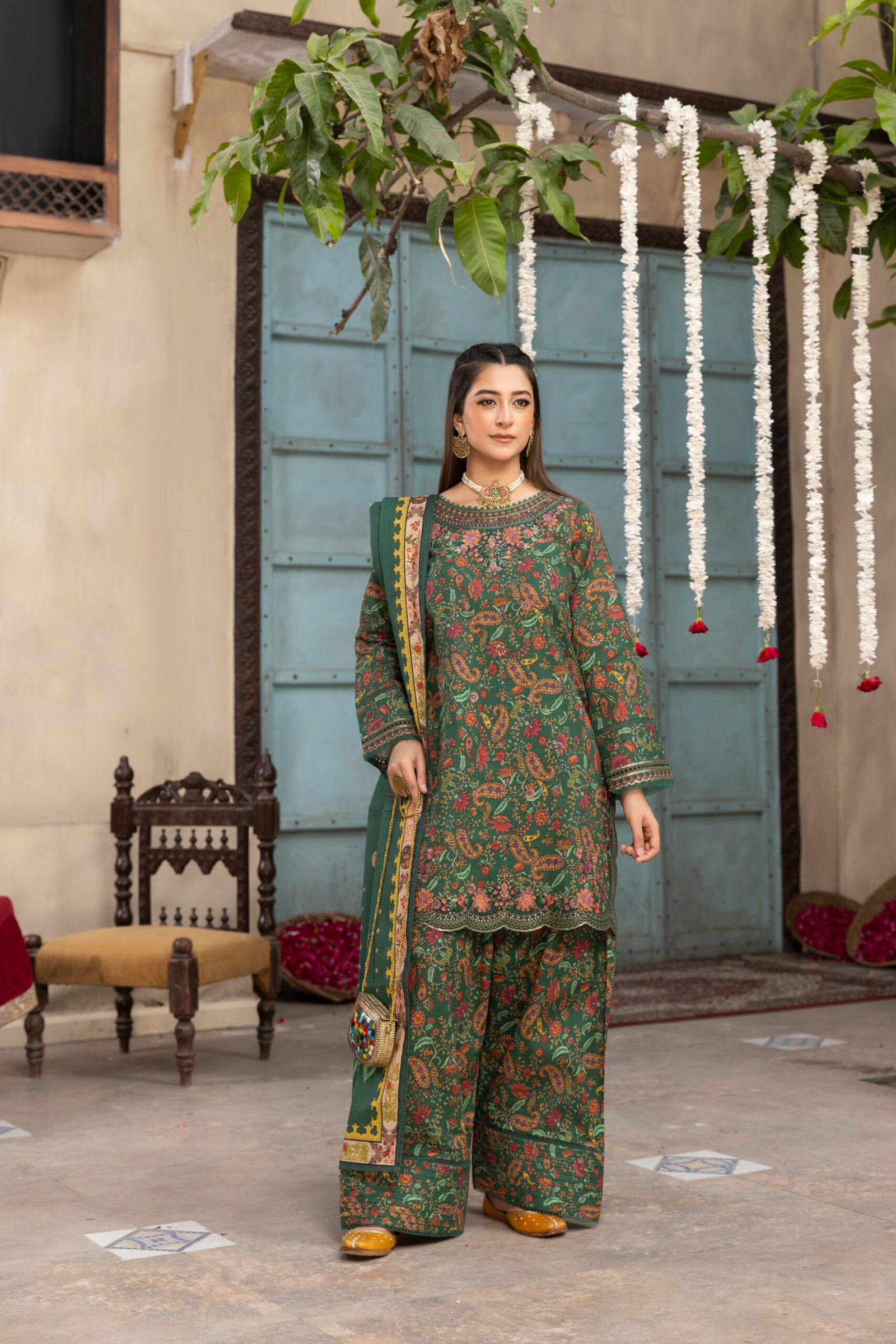 This EMBROIDED KHADDAR 3PC Stitched Suit offers a seamless combination of modern design and traditional charm. Made from premium khaddar fabric, it ensures a warm fit for all-day comfort, perfect for the winter season. The suit includes a beautifully tailored shirt, stylish trousers, and an elegantly designed dupatta, all crafted with precision and attention to detail. Whether you’re attending a family gathering, casual outing, or festive celebration, this suit offers versatility and sophistication. The rich patterns and colors effortlessly elevate your look, making this 3PC Stitched Suit a chic and essential choice for any wardrobe.