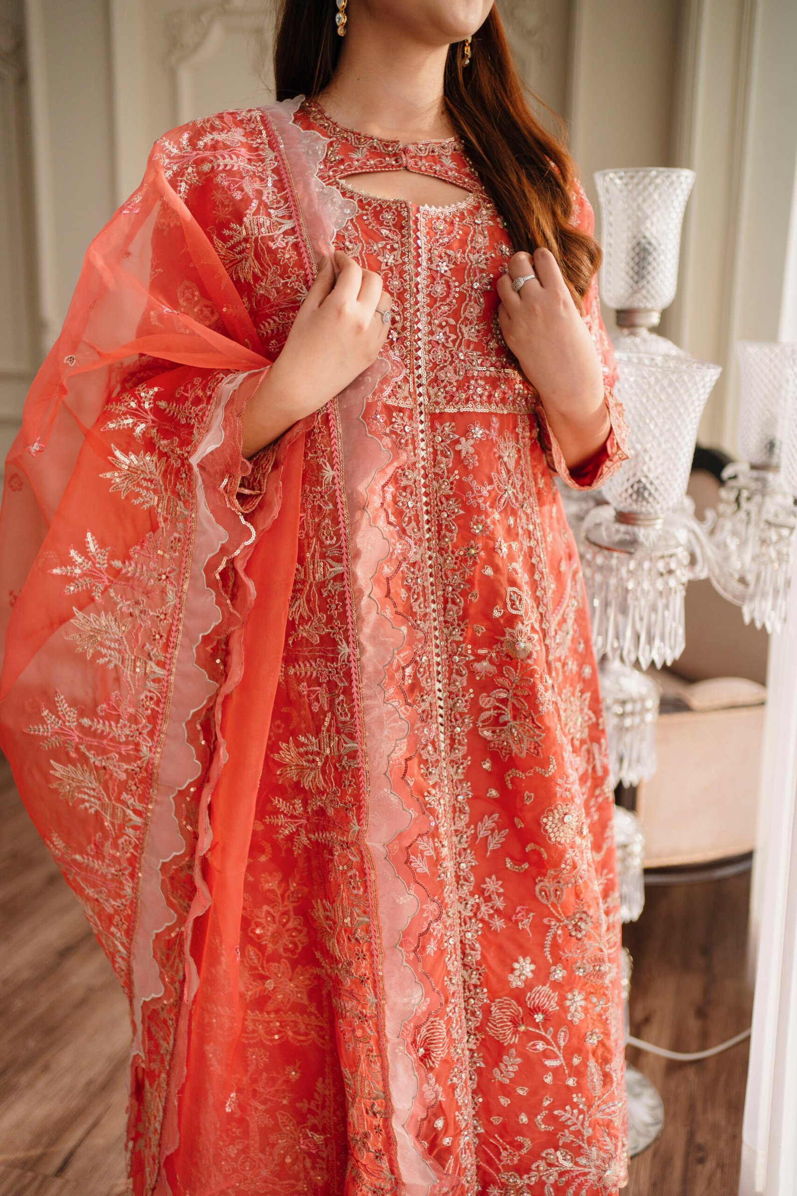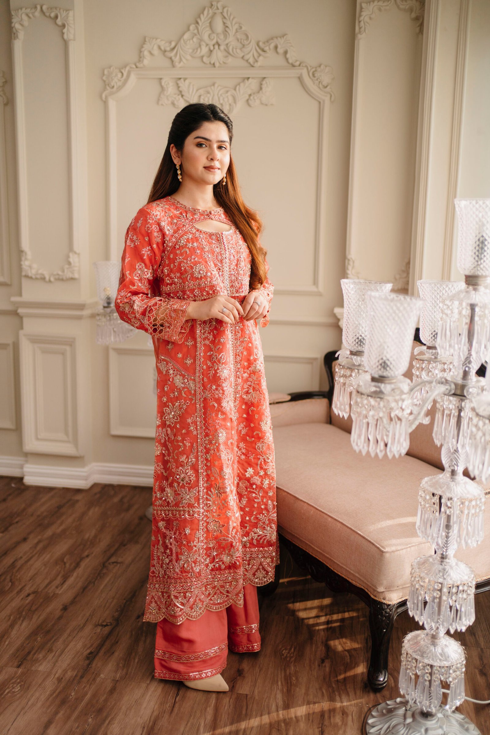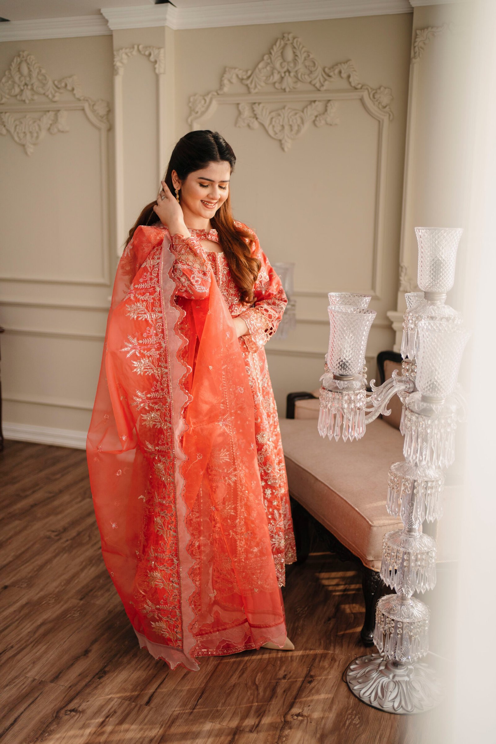(1 customer review)A beautifully combine traditional craftsmanship with contemporary style, creating a captivating look for special occasions. These gowns often feature luxurious fabrics like brocade, satin, and georgette, adorned with exquisite handwork, such as zari, sequins, and mirror work. The intricate designs are influenced by cultural motifs, making each gown a work of art. With elegant drapes, structured bodices, and flowing skirts, these gowns exude sophistication and grace, perfect for weddings, gala events, or festive celebrations. The attention to detail, paired with rich colors like royal blues, emerald greens, and rich golds, ensures the wearer stands out in style while embracing the essence of Eastern heritage.